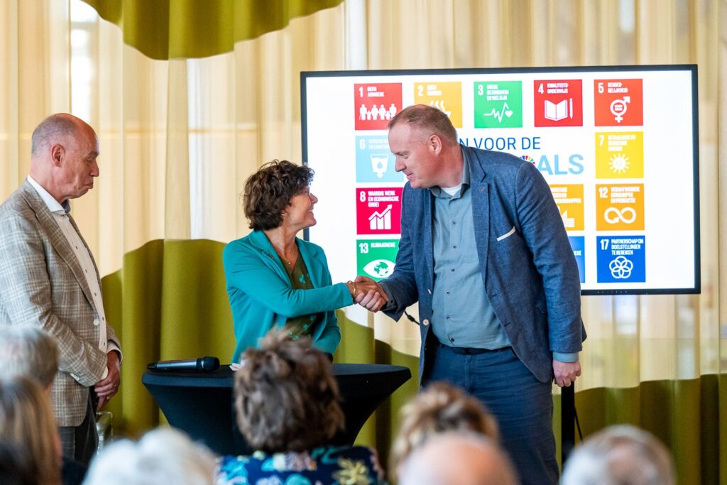 In september 2024 mochten we het SDG predicaat in ontvangst nemen! Het predicaat werd uitgereikt door Anita van der Noord in haar rol als SDG-regio coördinator/aanjager Brede Beweging Drenthe/Groningen. “Afier heeft met haar inzet op verschillende fronten laten zien dat ze niet alleen bewust bijdraagt een meerdere SDG’s maar ook een voorbeeldfunctie vervult in het stimuleren van duurzaamheid binnen en buiten haar organisatie. Daarom verdient Afier het SDG predicaat”, aldus Anita.